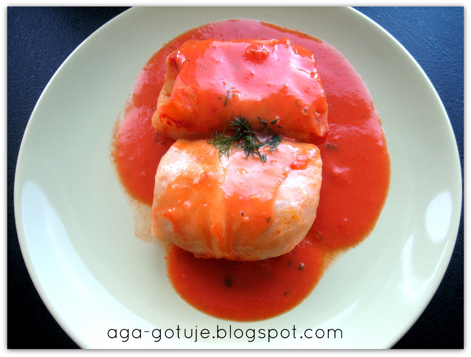 Doprawiam solą, pieprzem i ziołami i zalewam gołąbki w naczyniu żaroodpornym.