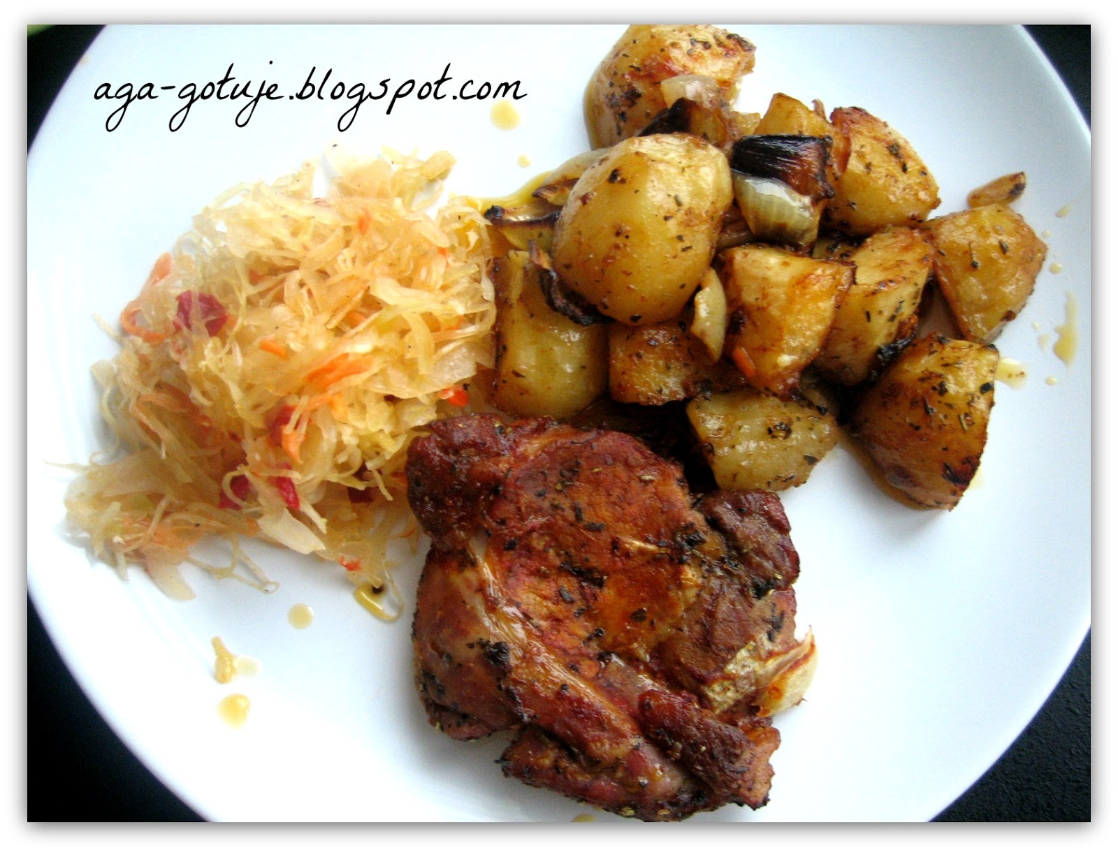 Należy zwrócić uwagę i od czasu do czasu mięso obracać a ziemniaki i cebulę zamieszać.