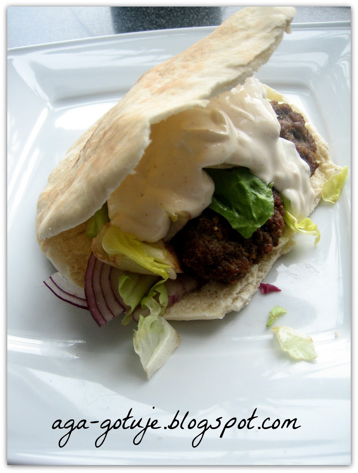 Pitę delikatnie zwilżamy i wkładamy do tostera lub piekarnika aż się zrumieni.