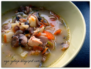Na pomysł tej zupy bazującej na zupie pieczarkowej wpadłam przez przypadek. I nie powiem wyszła zaskakująco dobrze :)