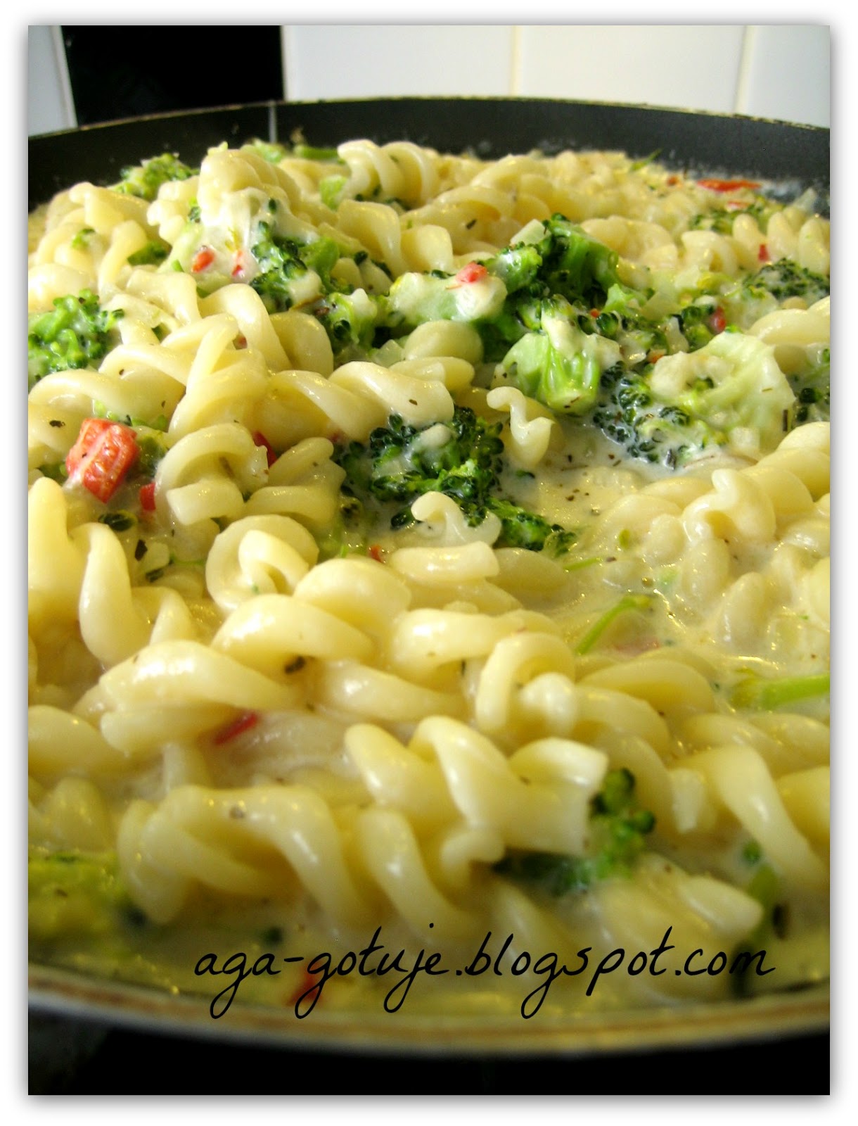 Cebulę siekamy wraz z całą papryczką chili i smażymy na masełku do zrumienienia, dodajemy brokuła i sos a na koniec dodajemy ser żółty oraz sól i pieprz do smaku.