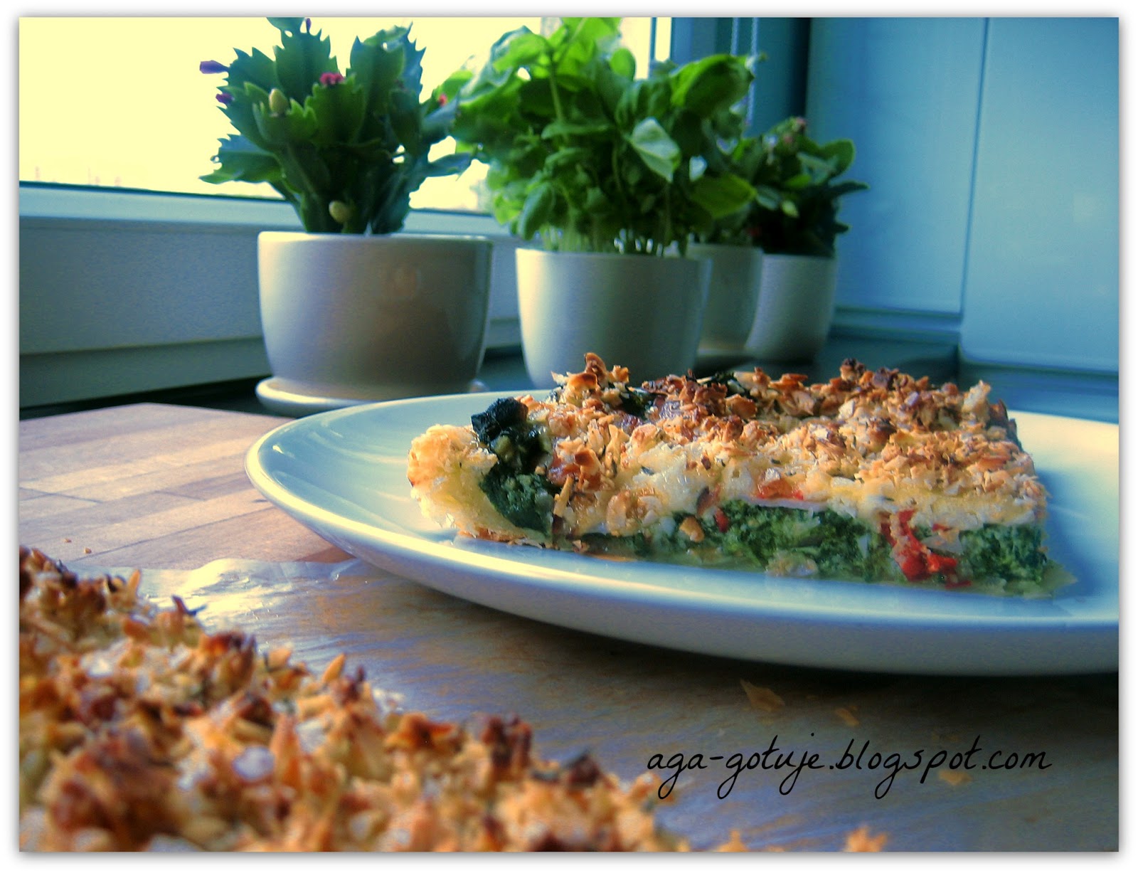 Pyszne ciasto z odrobiną papryczki chili i szynką oraz oczywiście szpinakiem, uwaga szpinak uzależnia :)