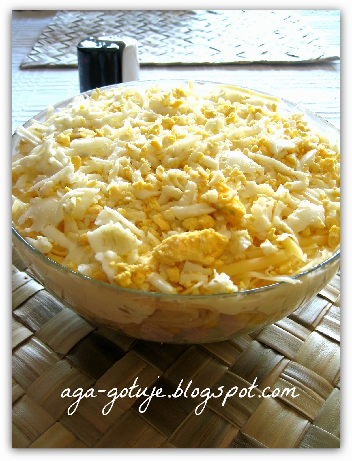 Zakrywamy sałatkę grubszą warstwą majonezu.