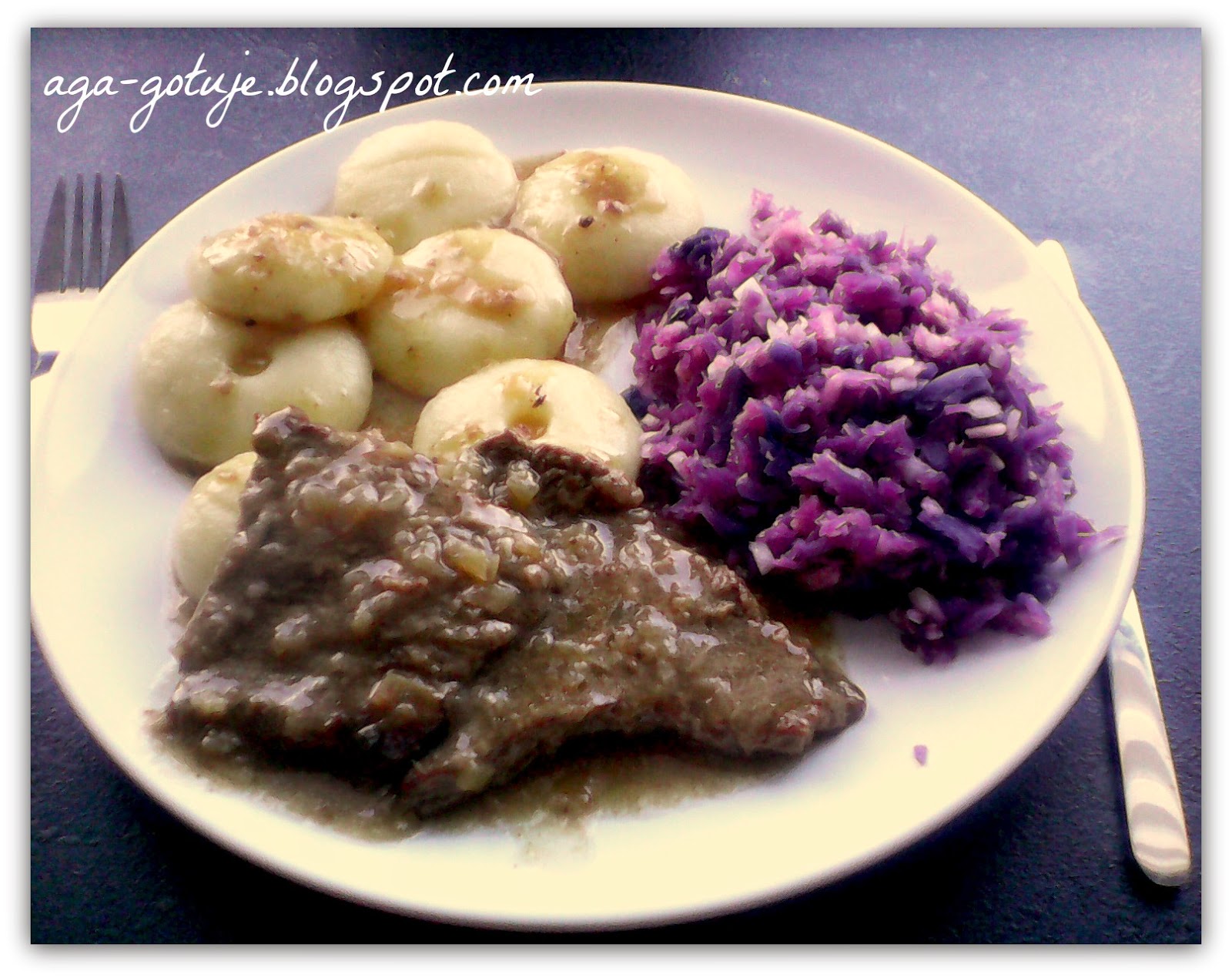 Podajemy z kluskami śląskimi (tutaj) i kapustą czerwoną (tutaj).