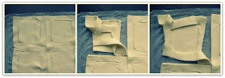 Ciasto rozkładamy i kroimy na 12 kwadratów (3x4 to optymalna wielkość kwadratów).