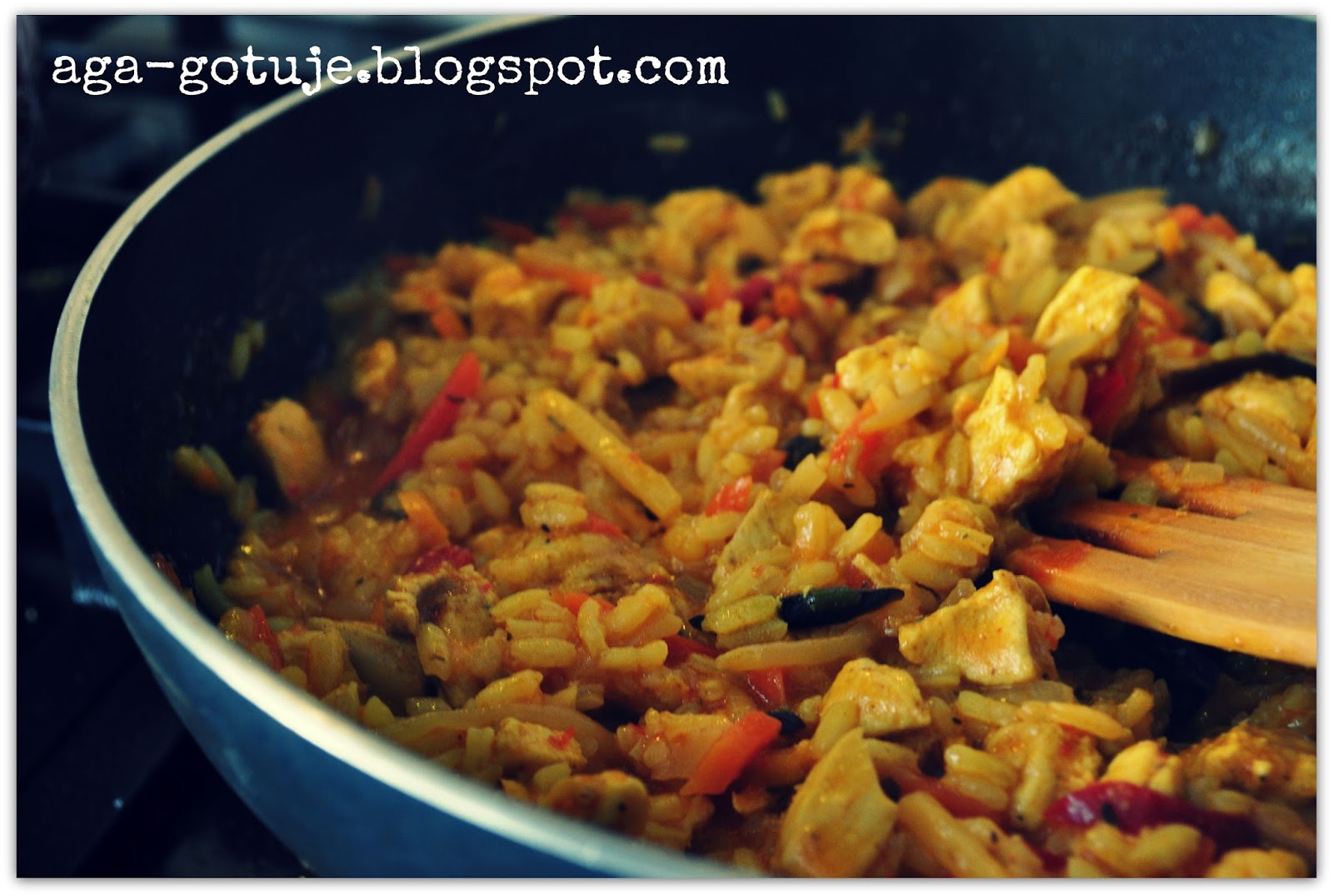 Gotujemy całość aż ryż będzie miękki, od czasu do czasu dolewamy bulionu.