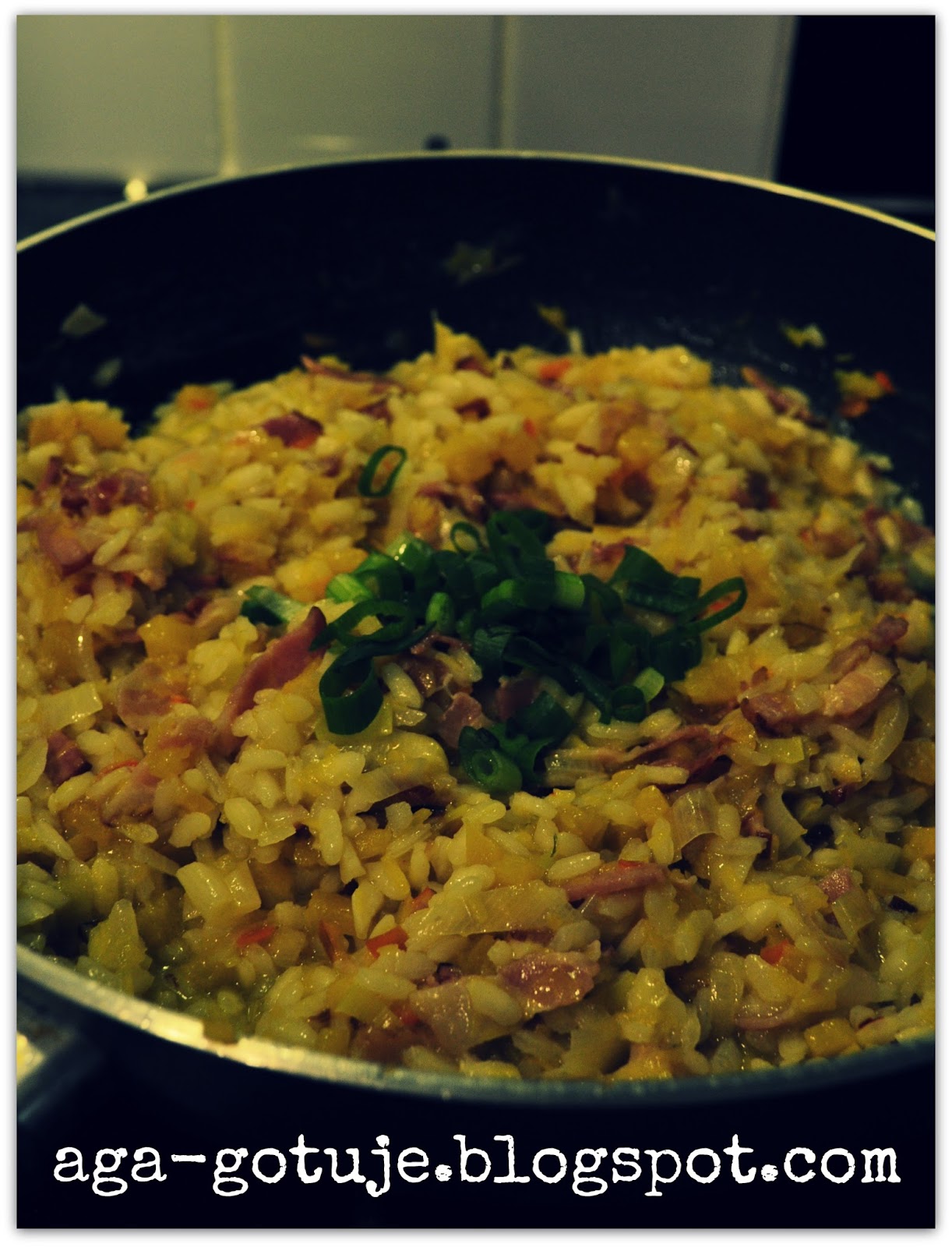Pyszne dyniowe risotto, bez papryczki chili na pewno nie będzie tak piekło w podniebienie jak moja wersja.
