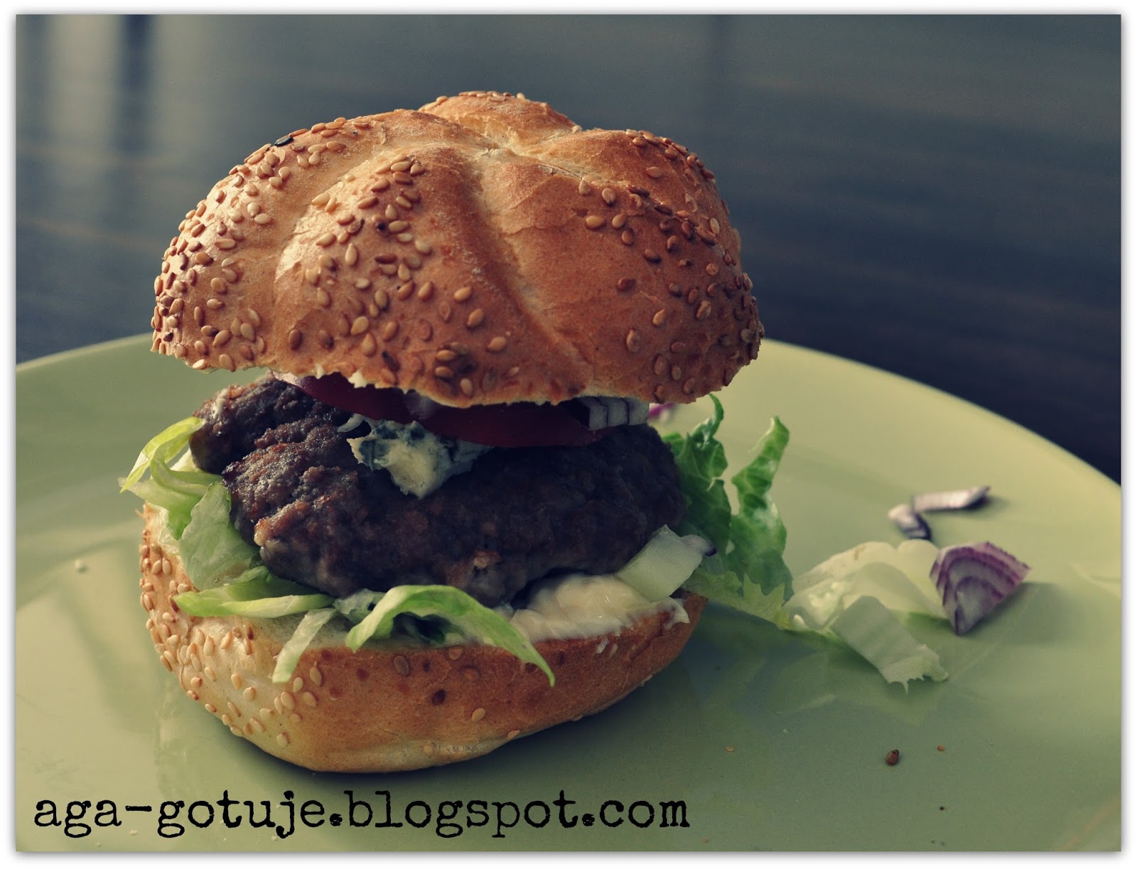 Kolejna wariacja na temat hamburgera dziś z serem ale .... pleśniowym i cebulą ale ... czerwoną.