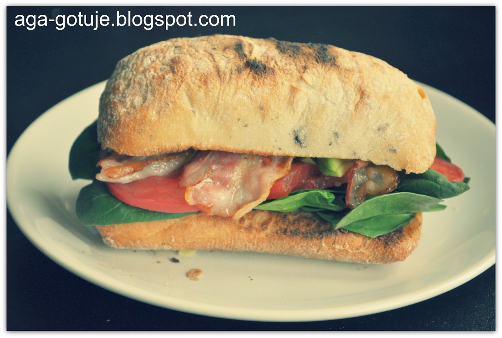 Gdy bułki są już chrupkie wyciagamy je i smarujemy majonezem, nakładamy kolejno szpinak, pomidora, boczek i awokado.
