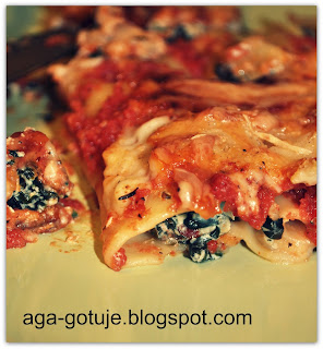 Zapiekam ok 45 min w temp. 130 stopni, tak by mozzarella się nie spaliła a cannelloni upiekło.