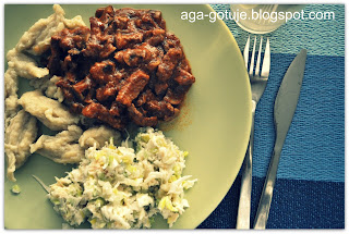 Strogonow podajemy z kluseczkami i sezonową surówką.