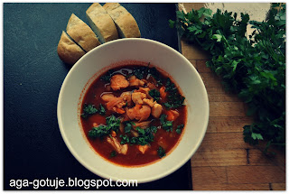 Pyszna zupa rybna z dodatkiem krewetek, flądry i... sami sprawdźcie.
